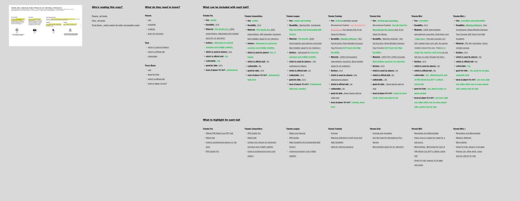 The starting point for every product differentiation project was to gather and understand as much as possible about the products, in this case footballs and football jerseys. To do this I: